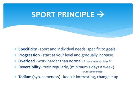 It is a tool for achieving outcomes in areas such as education, health, leadership development and fair play, and is unrivalled in its ability to link heart, mind and body, to connect individuals and to inspire communities. You want to improve your muscular endurance in. Reversibility most training is reversible, what that means is…adaptations aren’t permanent. Sport &fitt principle sport.